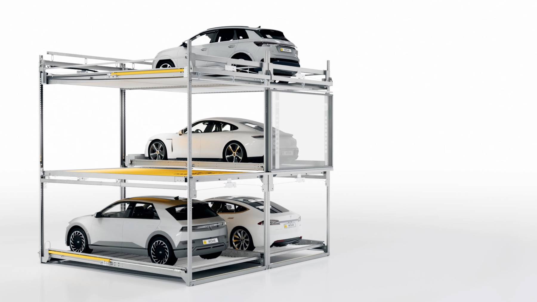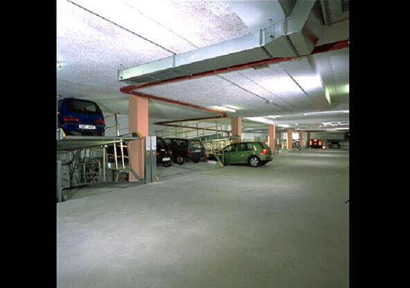 • Parklift 340: Uma solução confortável para situações onde tanto o espaço como a altura são limitados. Este sistema permite o estacionamento de veículos em plataformas sobrepostas, duplicando a capacidade de estacionamento sem necessidade de construção adicional.