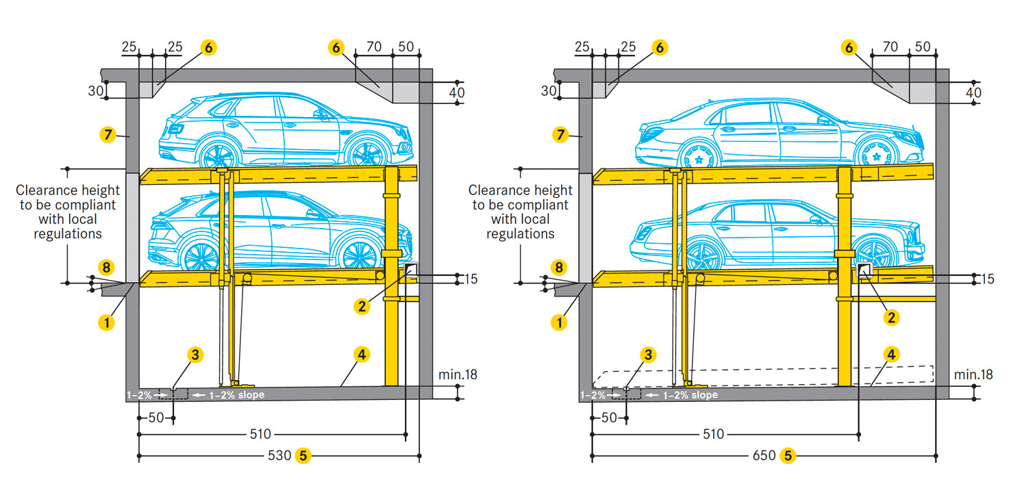 O espaço de manobra e a abertura da plataforma também podem ser adaptadas, para que o estacionamento seja o mais confortável possível para o utilizador.
