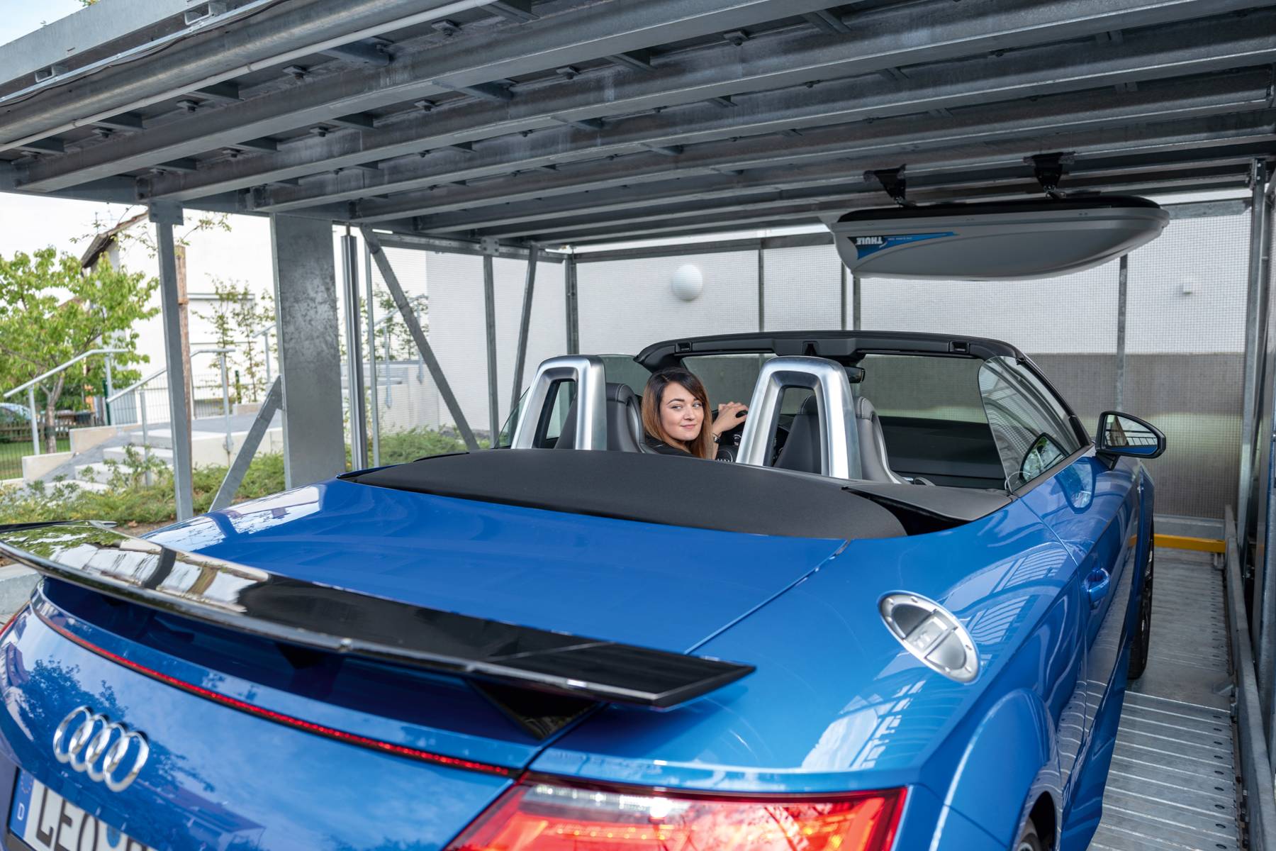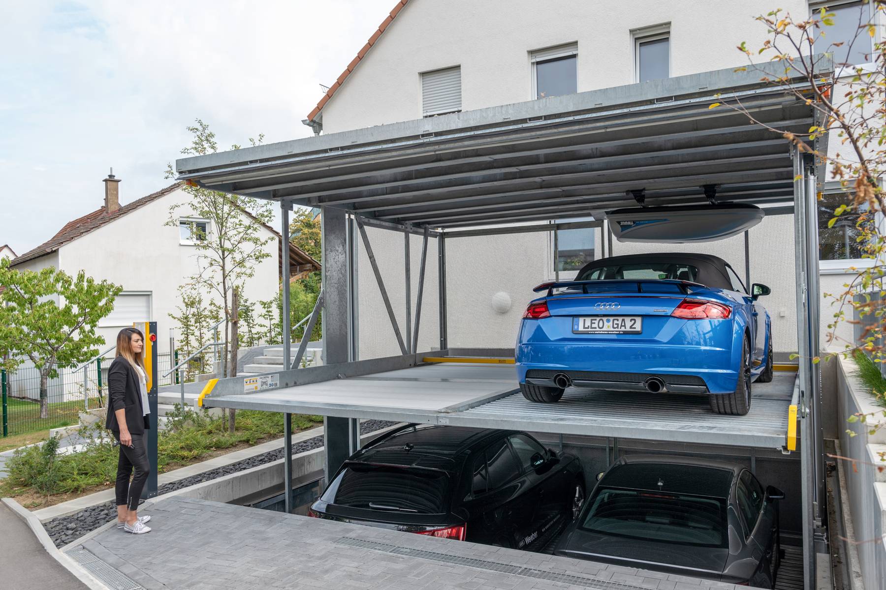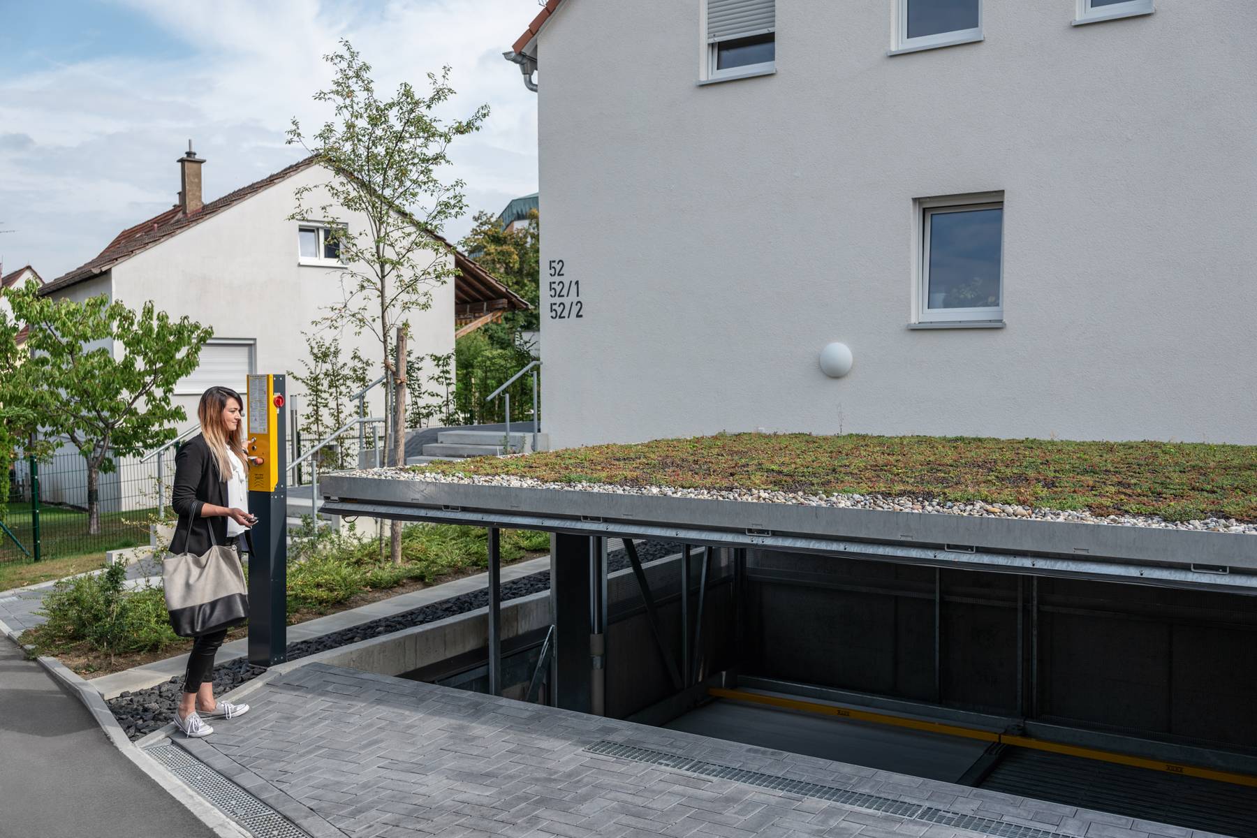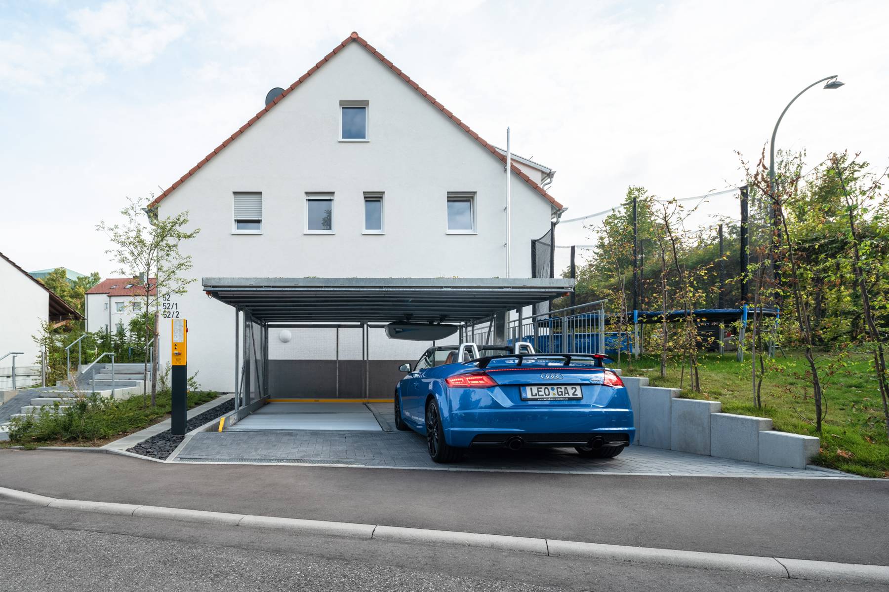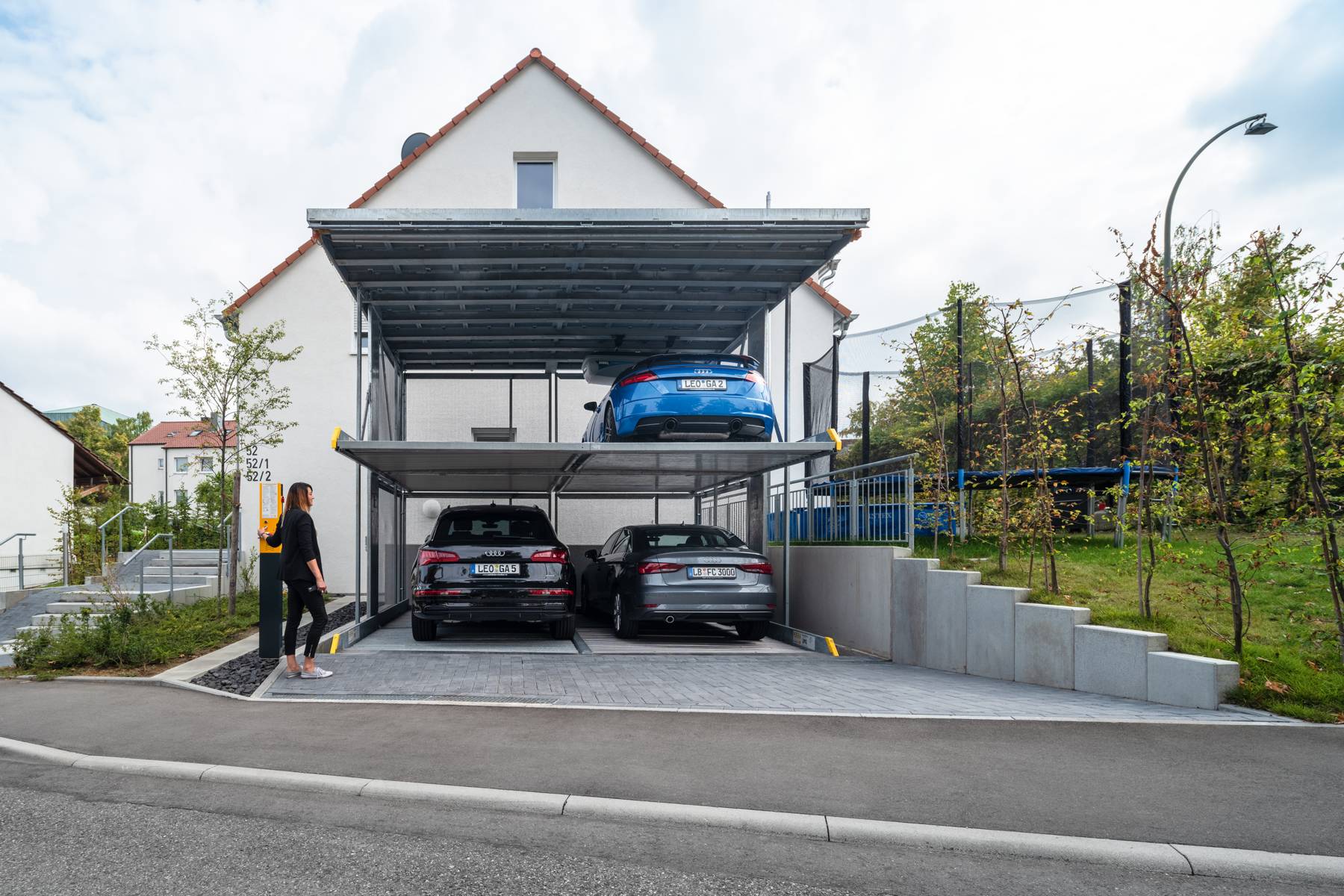 De forma a proporcionar o estacionamento de seis veículos, por baixo da zona de entrada, foram combinadas uma unidade singular do Parklift 462 (com largura de plataforma de 270cm) e uma unidade dupla (com largura de plataforma de 540cm). Na instalação, foi integrado também um sistema de carregamento de veículos elétricos.