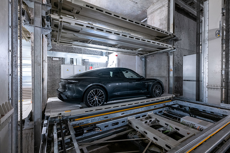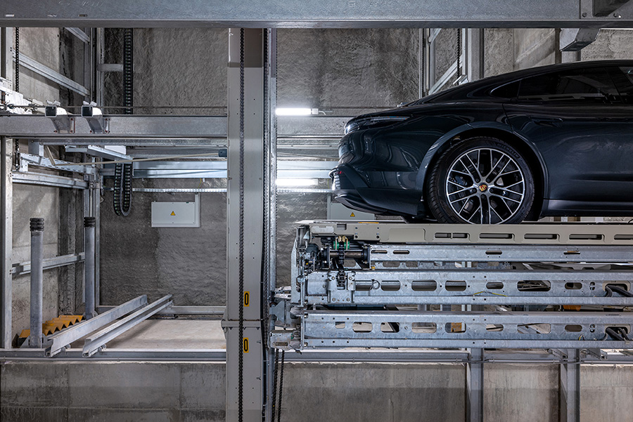 O Multiparker 740 é particularmente adequado para áreas estreitas e de planta longa. Dispõe de um parque de estacionamento de plataformas altas com economia de espaço, totalmente automático.